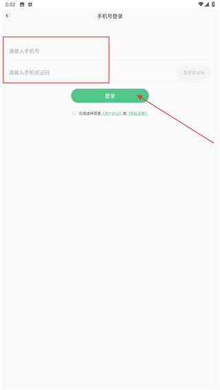 4、在手机号登录的页面内,输入要登录的手机号以及验证码,再点击登录的按钮即可。
