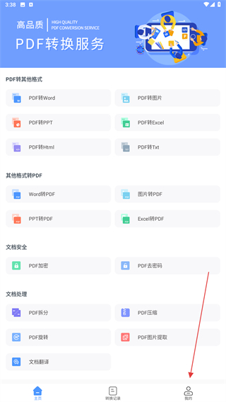 1、打开福昕pdf转换器APP,进入首页内点击右下角我的图标。