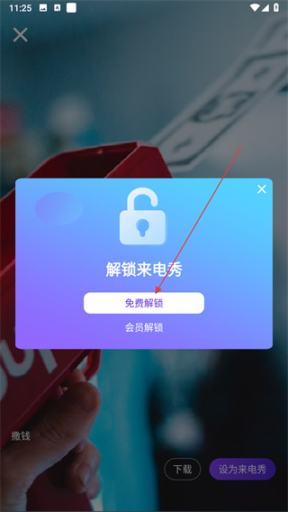 4、在解锁弹窗中,根据需求点击免费解锁,完成解锁即可成功设置。