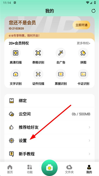 1、打开极速扫描仪app,点击底部导航栏中的我的选项,进入个人相关页面。