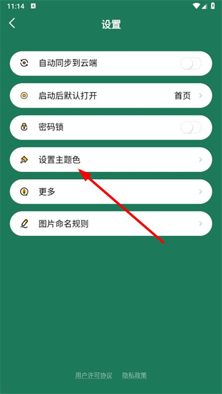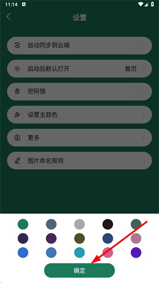 3、在设置界面中,点击设置主题色选项,弹出主题色选择面板。