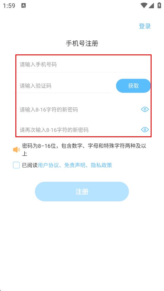 4、勾选已阅读相关协议、声明和政策,点击注册,即可完成趣智校园的账号注册。