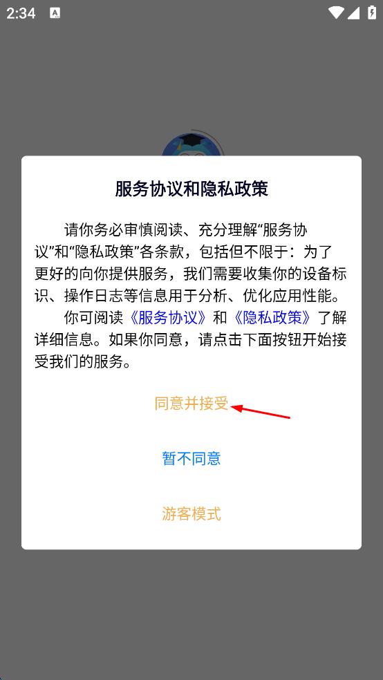 1、打开,在弹出的协议和政策页面,点击同意并接受,进入岗位实习登录页面。