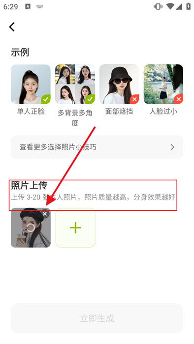 4、按照这里给出的提示,需要上传超过20张照片,才能让分身看起来更真实;