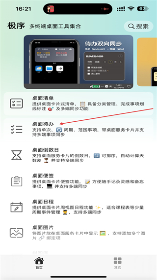 1、打开极序APP,进入到首页内点击桌面待办的功能按钮。