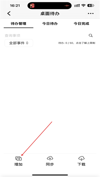 2、在桌面待办的页面内,点击下方增加的功能按钮。