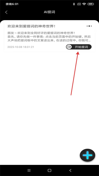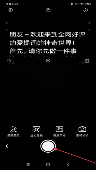 4、点击后,内容会呈现在该页面内,点击下方的按钮即可开始边看词边录视频。