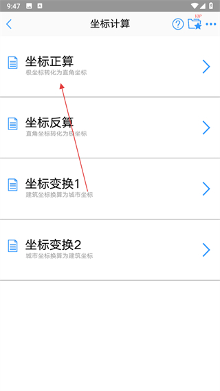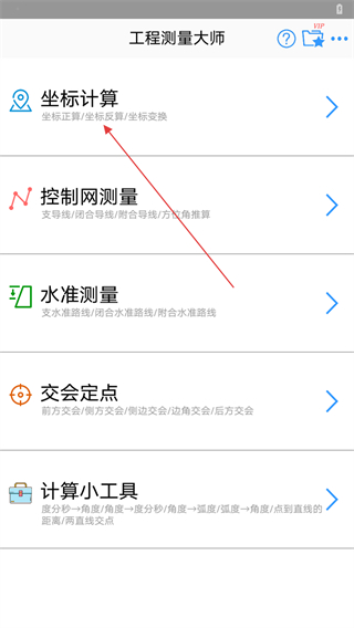 1、打开工程测量大师应用,点击坐标计算选项,进入坐标计算功能界面。