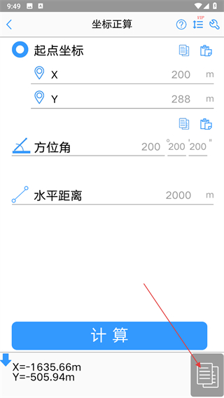 4、计算完成后,页面会显示出终点坐标结果,点击右下角的复制图标,可对计算结果进行复制。
