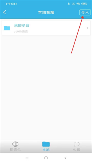 3、进入本地音频的页面内,点击右上角导入的功能按钮。
