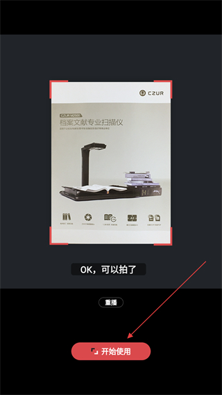 3、在扫描准备界面,点击开始使用按钮,进入拍摄页面。