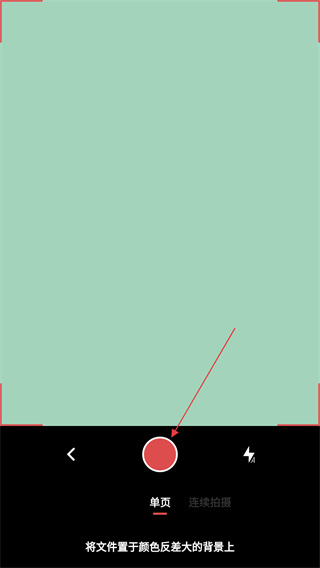 4、在拍摄页面,将文件置于颜色反差大的背景上,点击底部的红色拍摄按钮即可进行扫描操作。