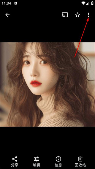 2、在图片查看页面,点击右上角三点图标,弹出操作选项。