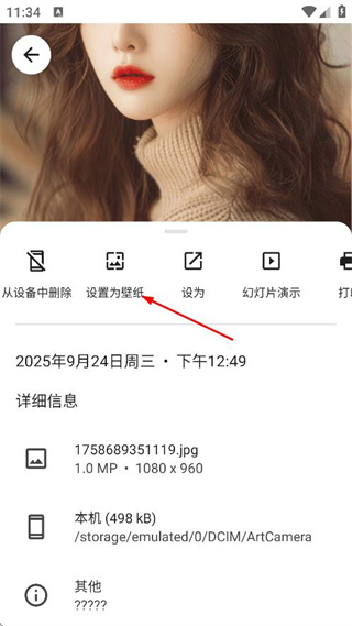 3、在操作选项中,点击设置为壁纸,进入设置壁纸流程。