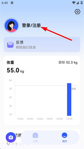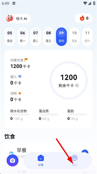 1、在轻卡健康的主页面,点击底部我的,进入个人页面。