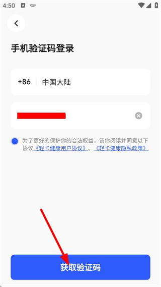 3、输入手机号,勾选同意协议后,点击获取验证码,获取验证码。