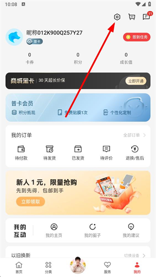 2、在我的页面,点击头像右上方的设置图标,进入设置界面。