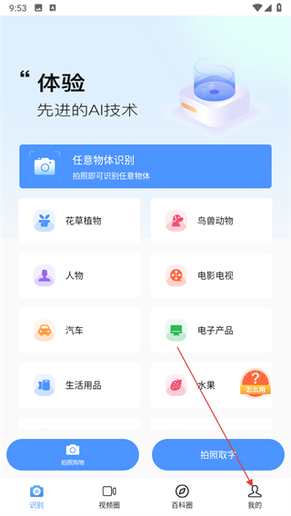 1、打开百科扫描王应用,点击界面右下角的我的,进入个人页面。