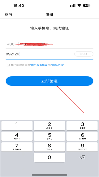 4、将收到的验证码输入进去后,再点击立即验证的按钮即可。