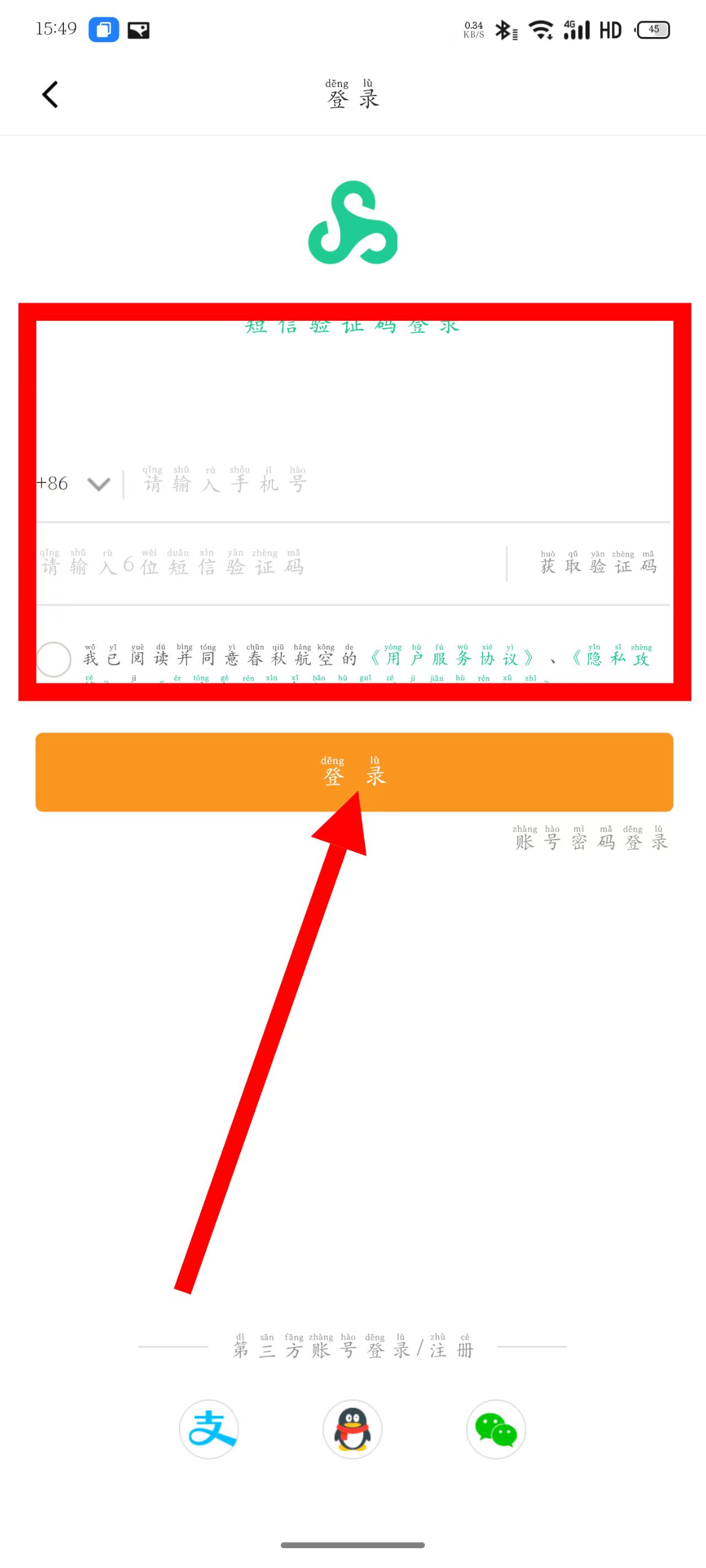 4、在登录页面,输入手机号、验证码,点击登录,完成操作。