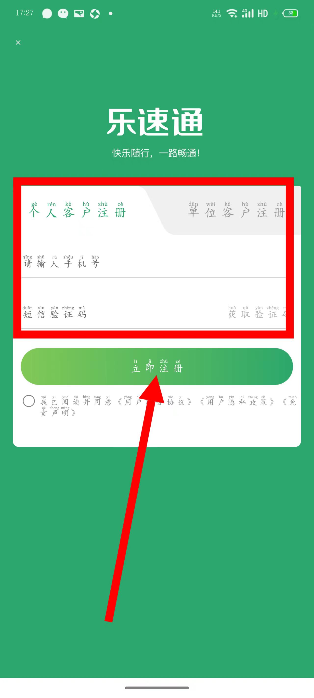 4、在注册页面,输入手机号,勾选后,点击立即注册完成操作。