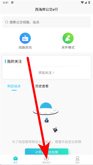 2、进入APP首页后,点击底部路线规划。