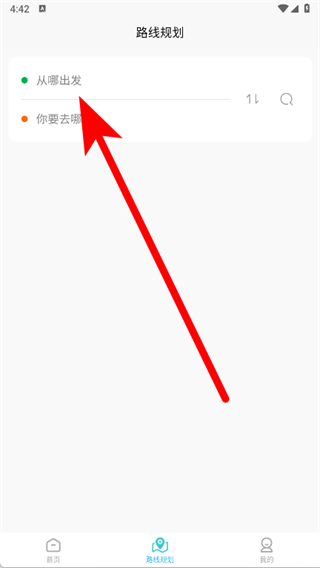 3、在路线规划页面,点击从哪出发。