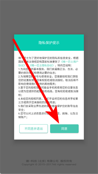 1、打开嘀一巴士,在隐私保护提示页面点击同意。