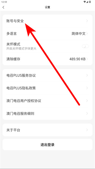 3、在设置界面里,点击账号与安全选项,进入账号与安全页面。