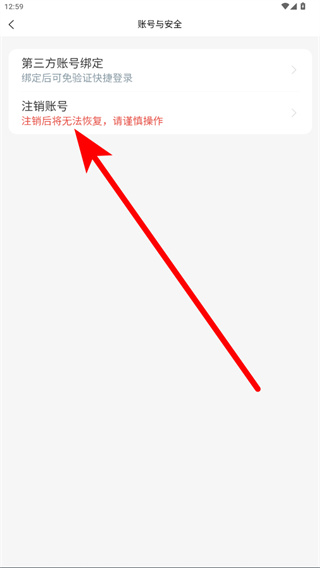 4、在账号与安全页面,点击注销账号选项,按提示完成后续操作即可注销账号。