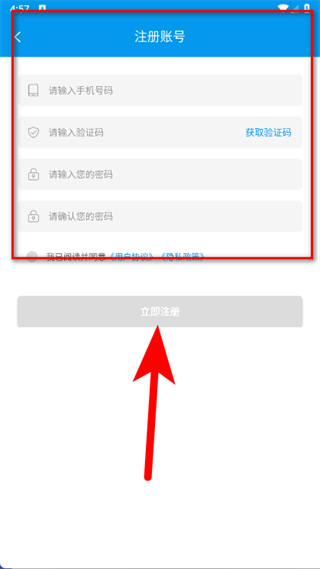 4、在依次输入手机号码、验证码、密码等信息后,点击立即注册。