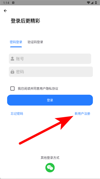 3、在登录页面,点击新用户注册。