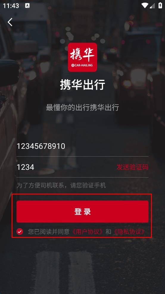 4、勾选已阅读并同意相关协议,点击登录,即可完成携华出行的登录。