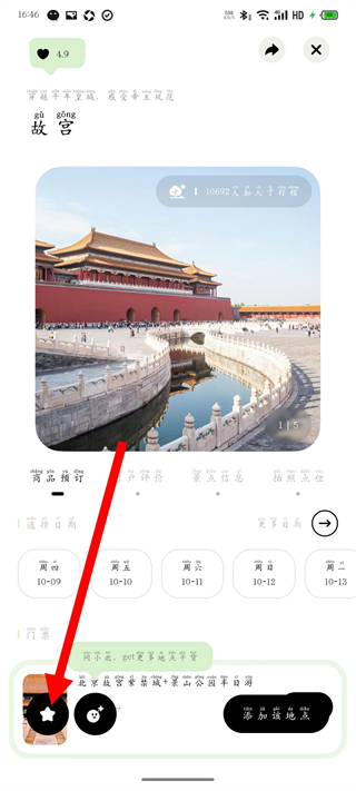 4、进入景点详情页后,点击左下角星形图标收藏该景点。