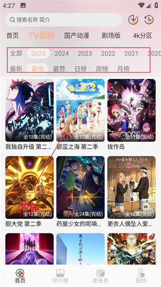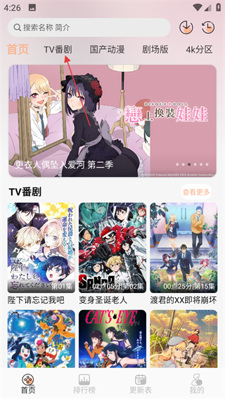 1、进入软件首页,点击顶部TV番剧标签,进入TV番剧分类页面。