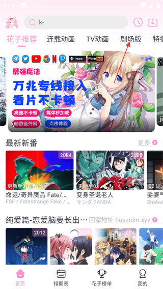 1、进入软件首页,点击顶部剧场版标签,进入剧场版分类页面。