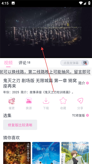 3、在剧场版播放页面,点击屏幕即可观看鬼灭之刃剧场版电影。