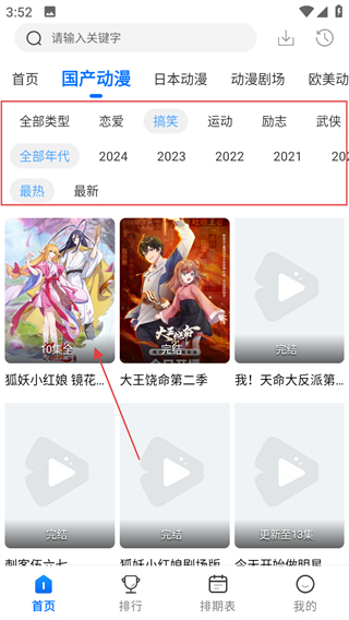 2、在国产动漫分类页面,筛选好条件,点击想看的动漫,进入动漫播放页面。