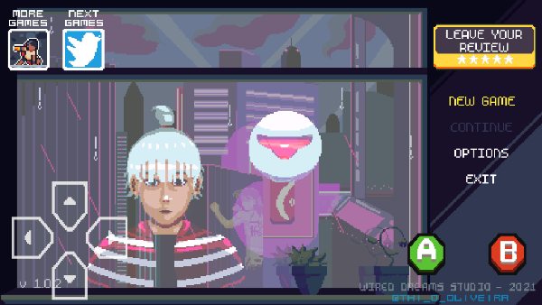 1、在本站下载安装该游戏打开进入,点击左边方向键盘,选择 NEW GAME,再点击绿色按钮 A。