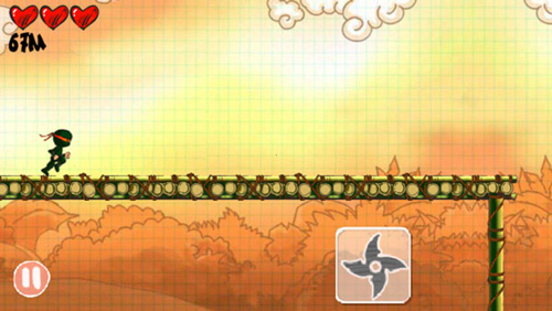 3、忍者能发射手里剑、实施跳跃、进行加速冲刺并释放必杀技,合理运用可突破重重难关