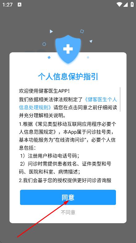 1、在个人信息保护指引弹窗中,点击同意,进入主页面。