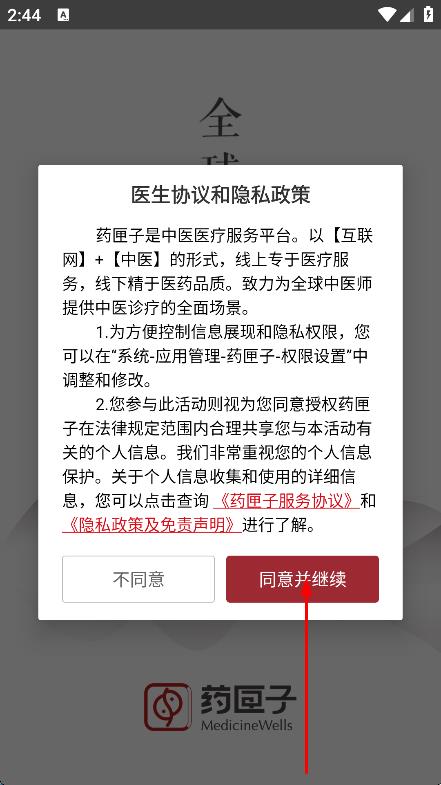 1、在隐私政策弹窗中,点击同意并继续,进入APP主页面。