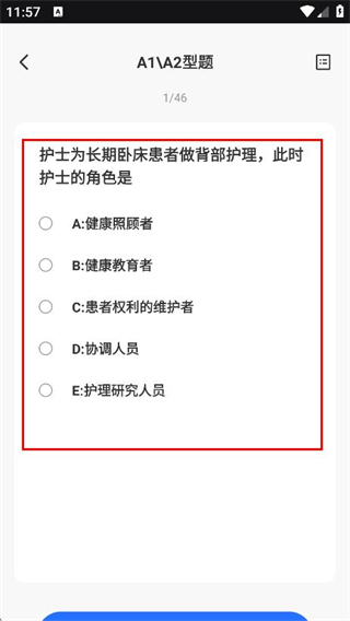 4、随后可作答题目,护士为长期卧床患者做背部护理,此时护士的角色是。