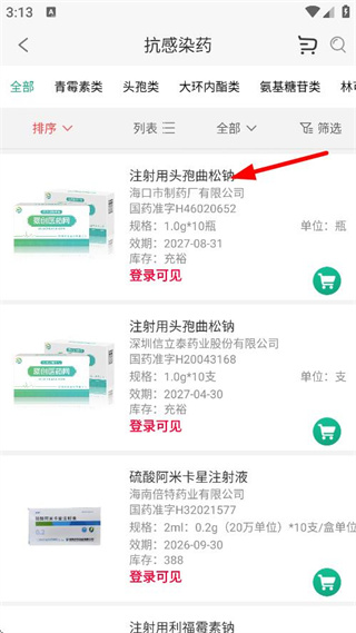 4、随后可在抗感染药列表页面,可查看具体药品的相关信息。