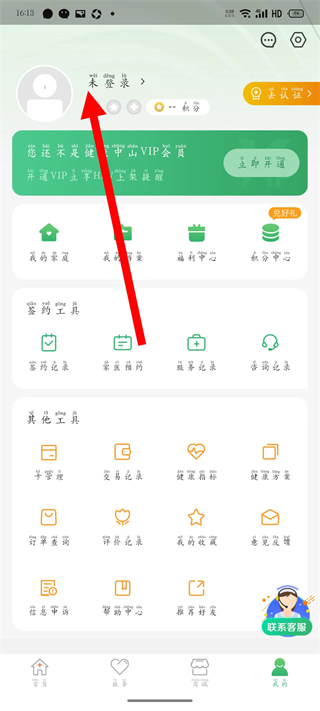 2、在我的页面,点击未登录区域。
