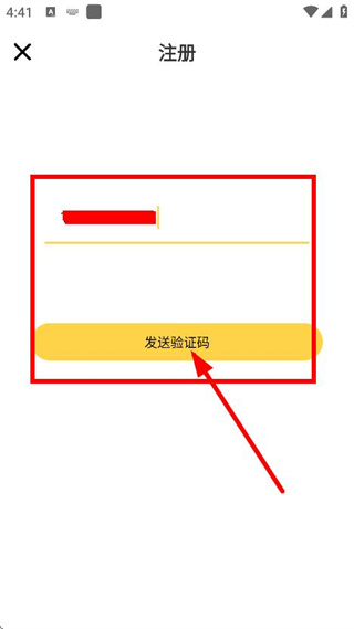 3、在注册手机号填写页面,输入手机号后,点击发送验证码,获取验证码。