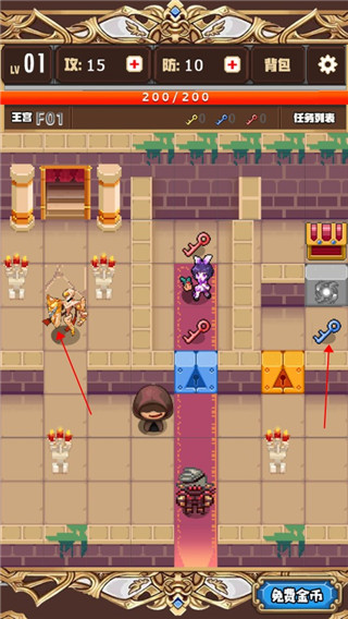 1、想要拯救公主就要获得蓝色钥匙打开大门,先去击败左边的魔神进入下一层。