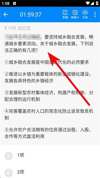 4、在答题界面,即可开始解答题目如行测单选题,完成答题操作。
