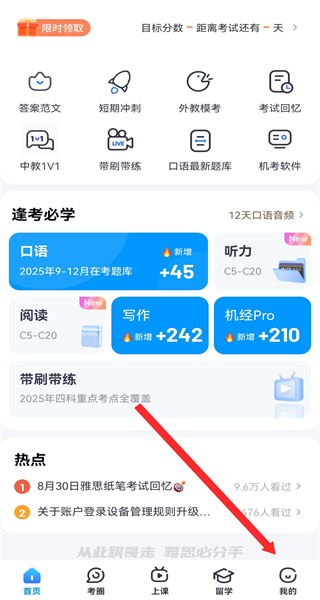 1、在雅思哥的首页,需要点击底部我的按钮,进入个人的页面。