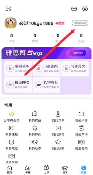 2、在个人的页面,需要点击编辑资料按钮,进入个人资料页面。
